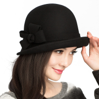布塔秋冬季羊毛帽子 蝴蝶结礼帽 女士保暖盆帽 韩版定型帽子圆顶