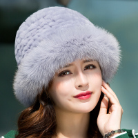 帽子女冬季獭兔毛编织狐狸毛盆帽礼帽冬天保暖时尚皮草帽子韩版浅灰色均码