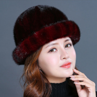 水貂帽子女冬季新款水貂毛整皮拼接卷边礼帽冬天保暖皮草帽子潮酒红色均码