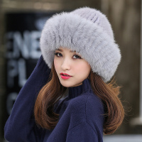 皮草帽子女冬天新款水貂毛貂皮帽狐狸毛缝制冬天户外保暖裘皮礼帽宝蓝灰均码