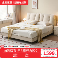 全友家居新中式卧室生态科技皮舒适软靠床屏橡胶木板木床双人床