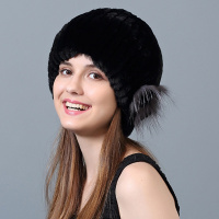 帽子女冬獭兔毛帽子女士帽子冬季皮草兔毛帽子女保暖护耳三朵花