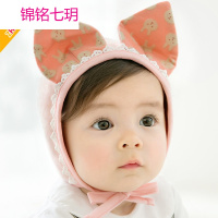 锦铭七玥2017秋季款新生婴儿帽男女宝宝兔耳朵花边护耳帽卡通全棉帽子