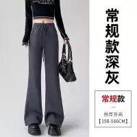 深灰色微喇休闲裤女款秋冬加绒胖妹妹mm高腰弹力显瘦运动卫裤
