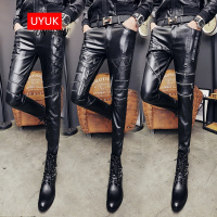 UYUK 2017秋冬季新款男皮裤拉链装饰潮男pu皮裤青年夜店KTV发型师时尚修身显瘦裤子