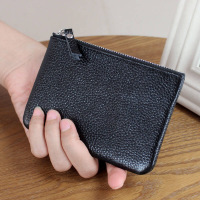 2017新款超软牛皮女包小清新短款拉链包女式零钱包薄款男士小手包学生卡包钥匙包潮男女黑色