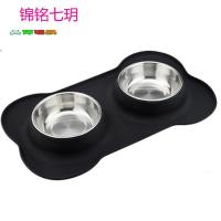 硅胶骨型宠物碗 不锈钢宠物双碗狗碗 环保无毒宠物食盆