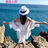 锦铭七玥2017新款女装雪纺吊带飞飞袖裙子 海边度假一字肩连衣裙沙滩裙