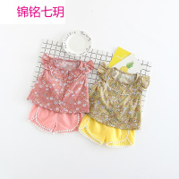 锦铭七玥童装一件代发 2018年婴童韩版女童碎花飞飞袖裙衫+短裤套装