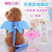 狗链狗狗胸背牵引绳宠物狗绳可爱蕾丝天使珍珠翅膀胸背带厂家批发