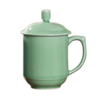 三维工匠龙泉青瓷创意时尚文具毛笔圆珠笔铅笔多功能复古办公圆形陶瓷笔筒 大号弟窑粉青笔筒