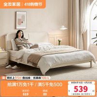 全友家居 板式床奶油风现代简约主卧室实木高脚双人大床