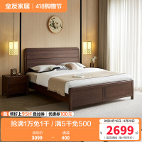 全友家居新中式卧室家具实木床宽大床靠储物高箱床双人大床