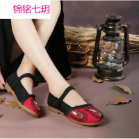 锦铭七玥新款复古民族风绣花鞋牛筋底老北京布鞋刺绣女鞋软底孕妇鞋单鞋
