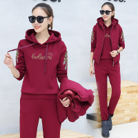 休闲运动套装女2017秋冬季新款加绒加厚修身显瘦卫衣马甲三件套潮