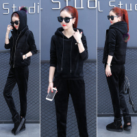 休闲运动服套装女天鹅金丝绒女装2017秋冬新款加绒加厚显瘦三件套
