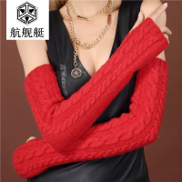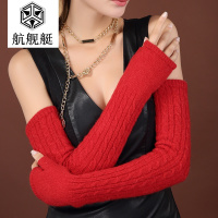 长款羊毛绒手套女加厚保暖毛线手套袖套半指手套手臂套