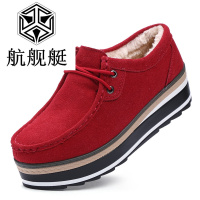 冬季新款加绒加厚棉鞋女真皮系带韩版摇摇鞋女厚底松糕跟毛毛保暖雪地靴