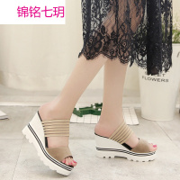 2017新款性感松糕鱼嘴鞋坡跟淑女凉鞋 厚底防水台高跟一字式拖鞋