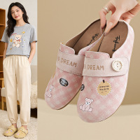 2026春夏新款半托勃肯鞋女格纹透气学生板鞋休闲鞋可爱小熊