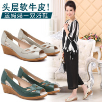 鱼嘴鞋真皮坡跟妈妈鞋平底防滑中老年女鞋夏季软底中年凉鞋女大码