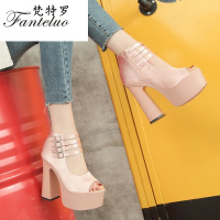 梵特罗 超高跟防水台欧美风夜店时尚2018春夏新款镂空粗跟鱼嘴鞋子