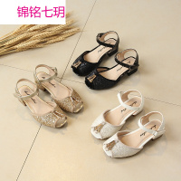 2017夏季新款女童凉鞋蝴蝶结亮片鱼嘴鞋韩版公主鞋中大童女孩鞋潮