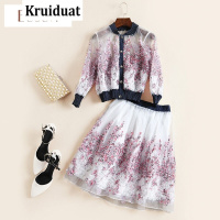 Kruidvat2017夏季新款欧根纱透视立体盘花衬衫+大摆中裙气质两件套OYCP