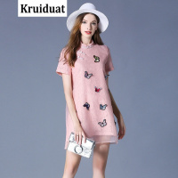 Kruidvat2017欧美夏季新款女装欧根纱蕾丝立体蝴蝶刺绣旗袍连衣裙女ZY图片色