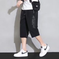 YANXU冰丝七分裤男夏季薄款宽松阔腿裤男士休闲裤中国风大码潮牌短裤夏