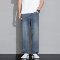 REGULARFIT男士牛仔直筒裤经典蓝做旧水洗大码宽松垂感长裤