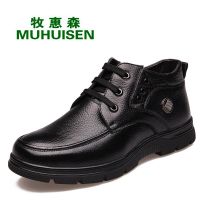 牧惠森真皮棉鞋冬季新款男靴休闲保暖男鞋防滑皮质时尚马丁靴爸爸鞋
