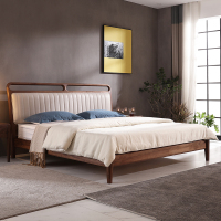 林间雀 现代北美黑胡桃1.5m*2m实木床棉麻软靠卧室1.8m*2m双人床主卧家具 JM40#
