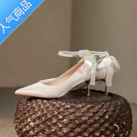 SUNTEK法式绸缎单鞋女日常可穿白色伴娘新娘配婚纱婚鞋细跟成人礼高跟鞋