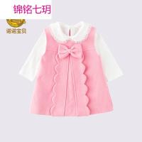 锦铭七玥韩版女宝春秋宝两件套装婴幼儿外出衣服女童公主呢子裙娃娃领衬衫