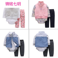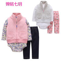 锦铭七玥代发新生儿婴儿服装 女宝秋冬保暖加厚纯棉立领马甲背心套装