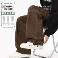 |男装美式复古阔腿工装裤男洗褪潮流宽松直筒拖地休闲裤男