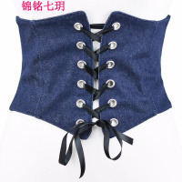 锦铭七玥牛仔腰封女士束腰绑带宽腰带夏季装饰塑身系带百搭欧美蓝色超宽潮