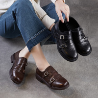 25新潮款中跟皮带扣乐福鞋春秋英伦皮鞋厚底复古时尚百搭牛皮女鞋