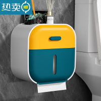 敬平卫生间纸巾盒厕所厕纸置物架洗手间卫生纸抽纸卷纸免打孔防水壁挂 石青绿[拼色款]高颜值/免打孔 抽纸卷纸两用