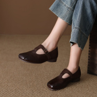 头层牛皮单鞋女2026春季新款真皮搭扣百搭复古透气平底圆头休闲