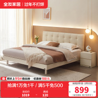全友家居 板式床奶油风现代简约主卧室实木高脚双人大床