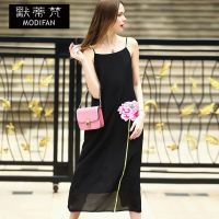 默蒂梵2017夏季新款女装欧美风重工刺绣吊带裙双绉真丝宽松大码连衣裙