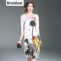 Kruidvat欧洲站2017春夏新款水墨印花真丝双绉连衣裙B087图片色