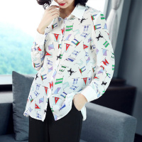 2018春季新款简约时尚真丝长袖衬衫 翻领几何OL真丝双绉衬衣女