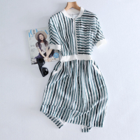 休闲宽松棒球领真丝双绉连衣裙 竖条纹显瘦连衣裙 收腰真丝裙子夏
