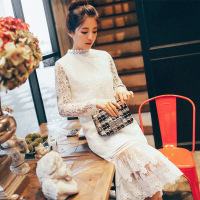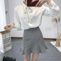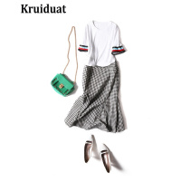 Kruidvat欧美女装夏季新款2017流苏格子包臀鱼尾裙套074白色