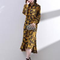 Kruidvat2017春夏新款真丝印花连衣裙喇叭袖修身鱼尾裙JYL图片色