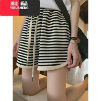 YIBUSHENG冰丝裤子女季薄款条纹休闲裤大码胖mm宽松阔腿裤运动裤高腰短裤