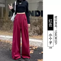 YIBUSHENG慵懒风红色格子休闲裤女季高腰宽松直筒薄款阔腿裤子遛弯裤长裤